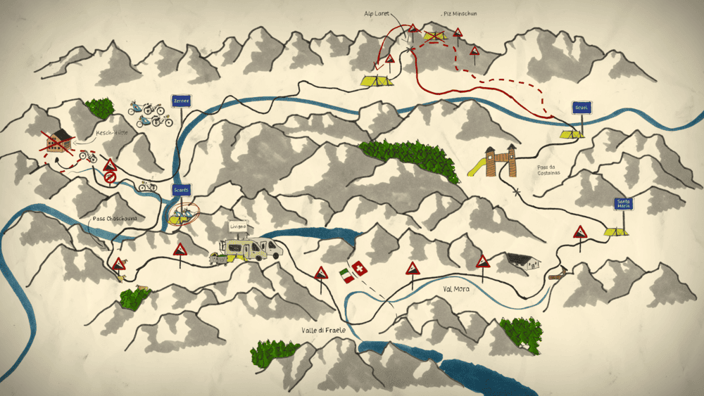 Jakob and Konne, two adventurous fathers, bring their two year old sons on a six-day mountain bike tour through the Swiss Alps. From rumbling stomachs and croissant crises to unavoidable tantrums – what begins as an ideal plan quickly turns into a test of patience for all four.